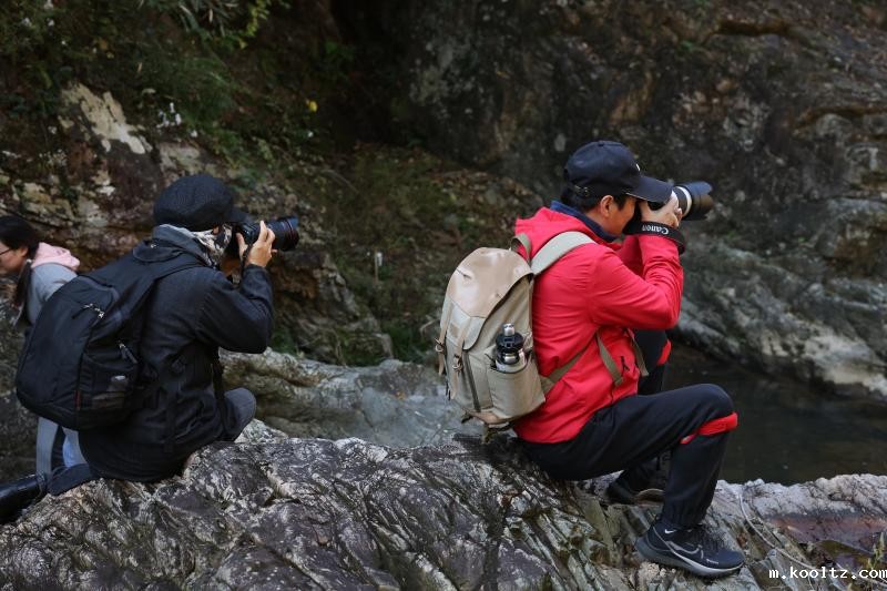 本次采风活动旨在通过摄影家的镜头,展现大别山狼谷秋季的迷人风光,进一步提升景区的知名度和美誉度,促进乡村旅游的发展。摄影家们抵达狼谷后,立刻被眼前的美景所震撼。他们纷纷举起相机、无人机,寻找最佳的拍摄角度。摄影家们穿梭在峡谷之间,时而驻足于飞瀑旁,时而攀上岩壁之上,用镜头捕捉着每一处动人的瞬间。(丁文新)
