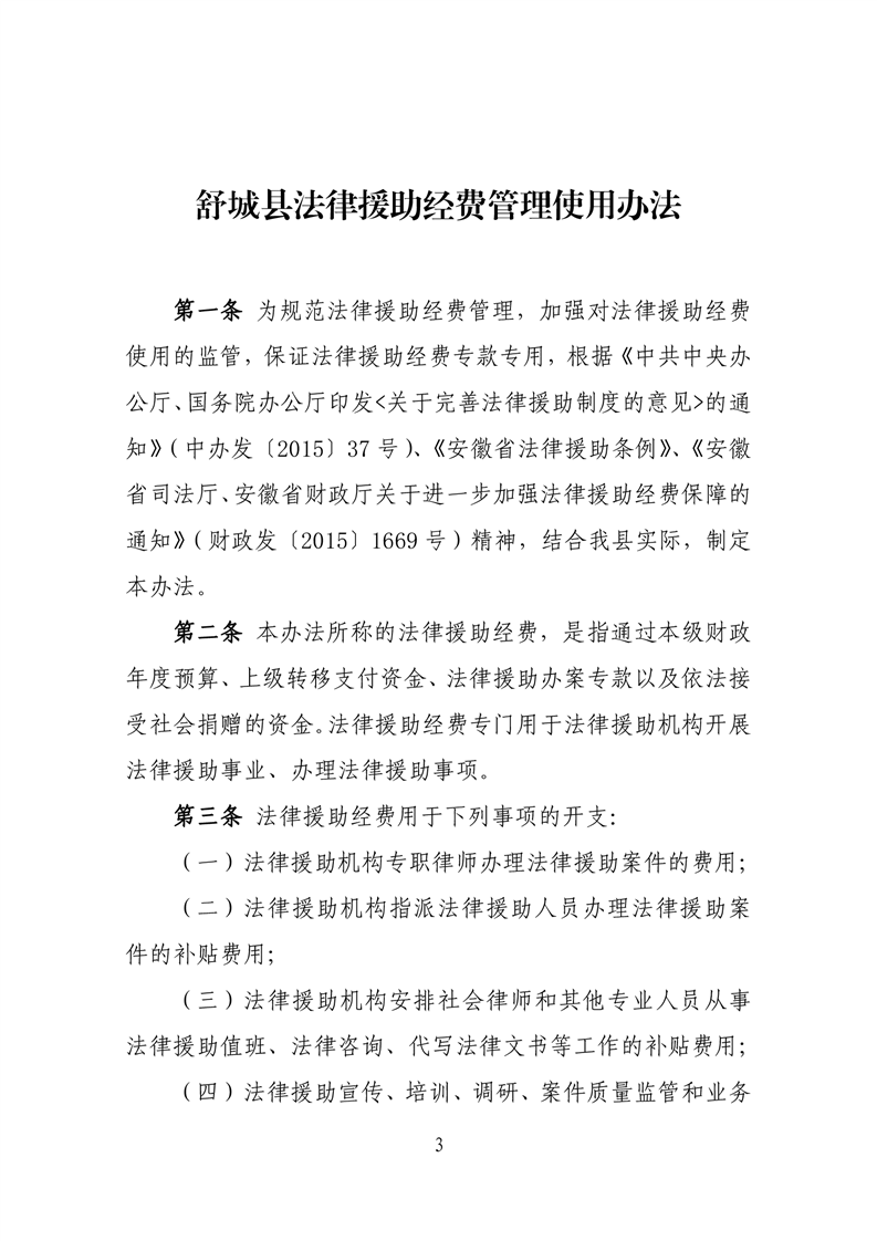 关于印发《舒城县法律援助经费管理使用办法》的通知(沿用)