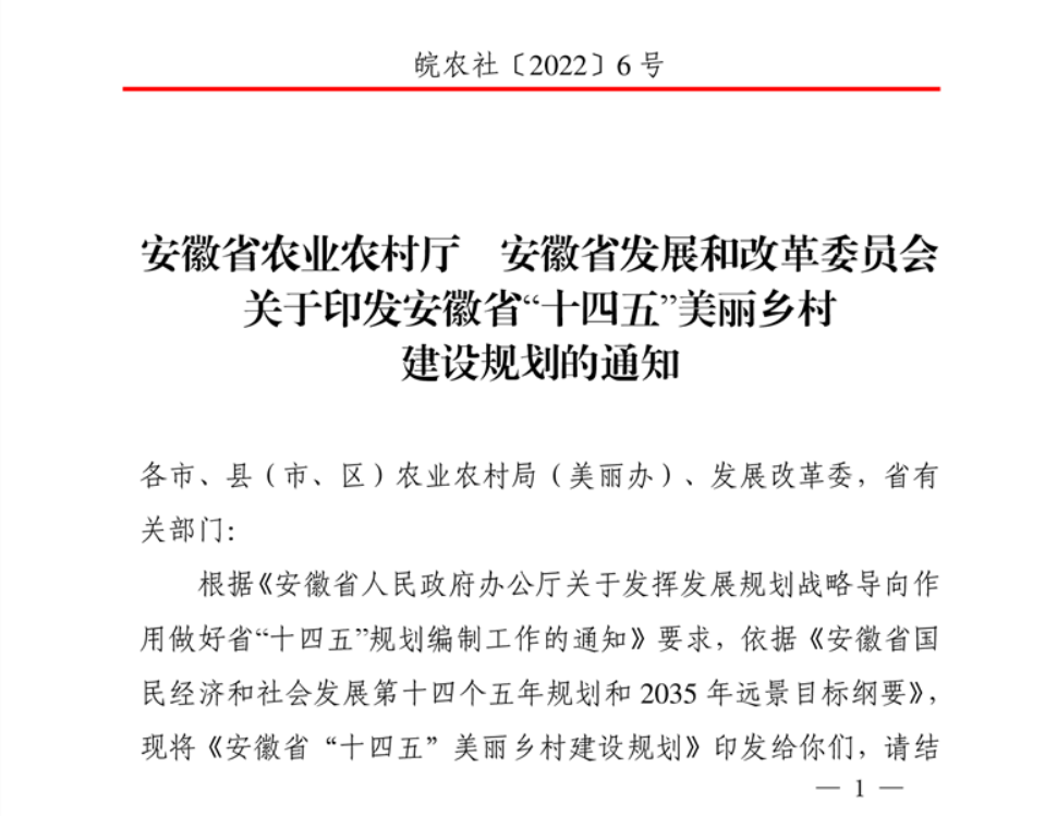 【政策】关于印发安徽省“十四五”美丽乡村建设规划的通知(继续沿用)