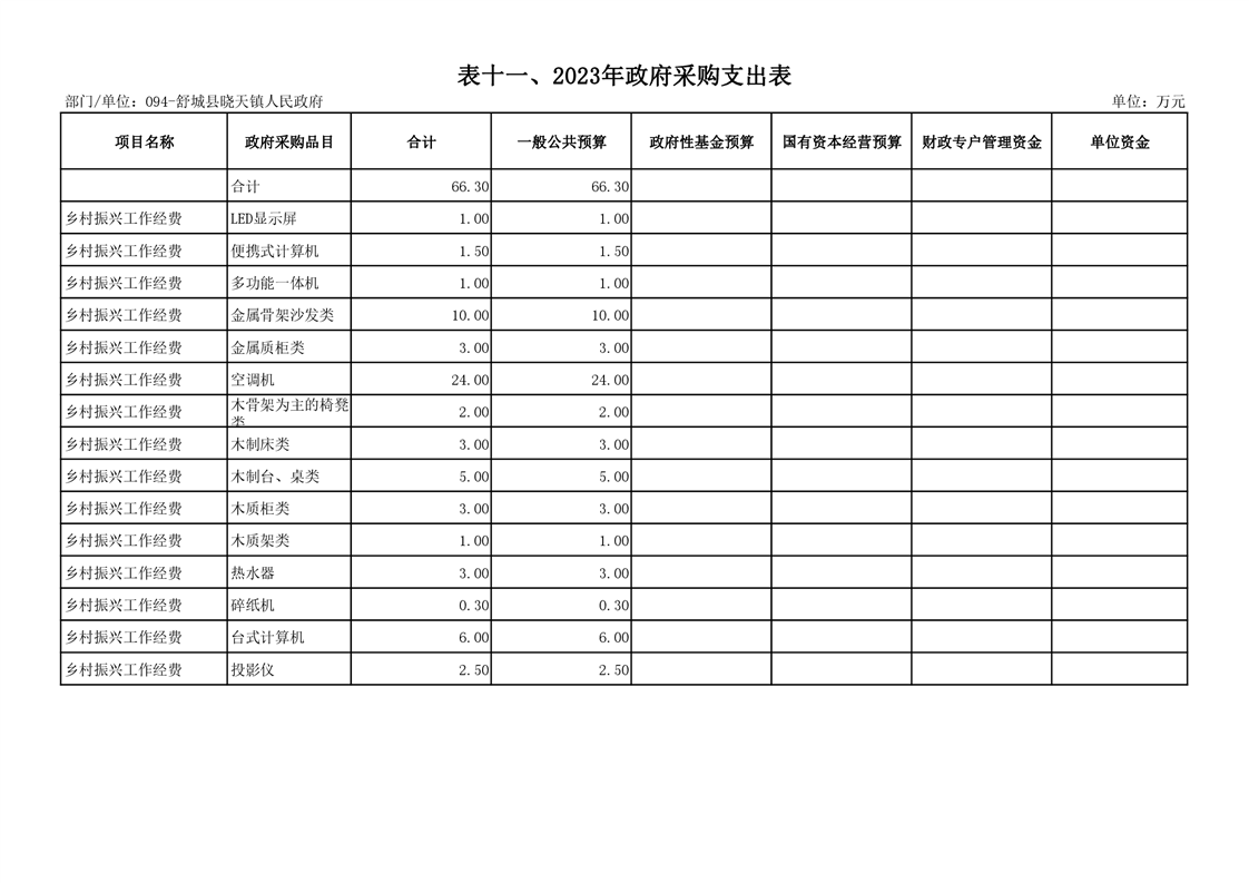 11.舒城县晓天镇人民政府2023年政府采购支出表.pdf