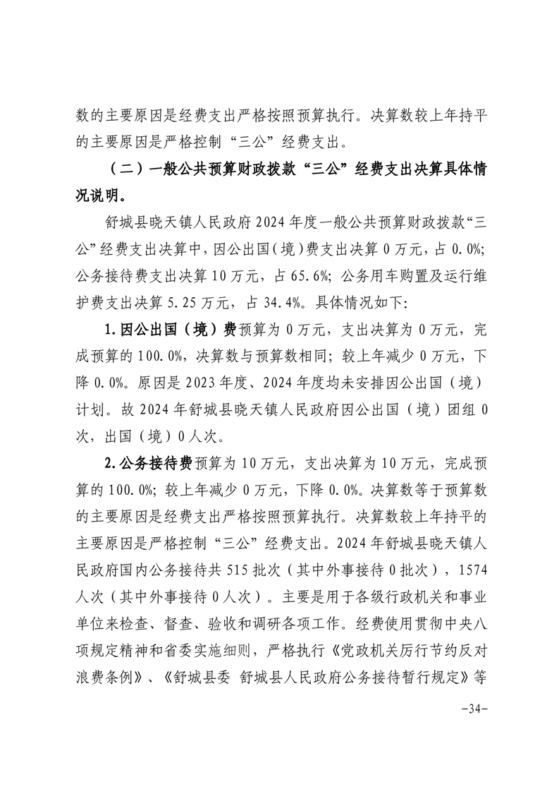 舒城县晓天镇人民政府2024年度一般公共预算财政拨款“三公”经费支出决算.pdf