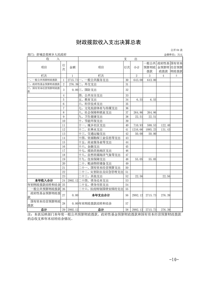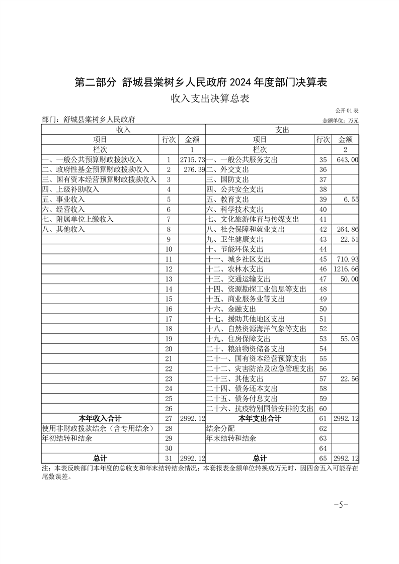 舒城县棠树乡人民政府 2024 年度部门决算