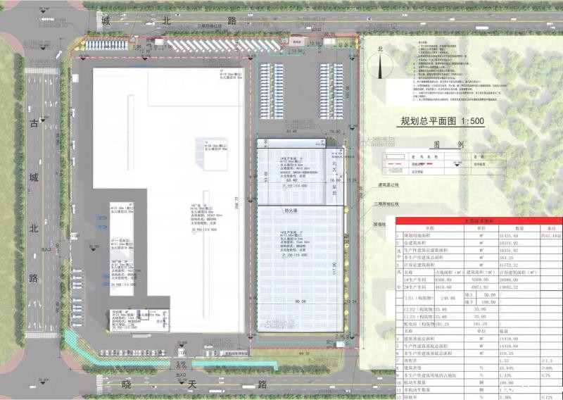 安徽华红新能源科技有限公司特种砂浆生产线及新能源设备新建项目用地位于安徽舒城经济开发区(城关片区)古城北路与晓天路交叉口东北角地块(具体位置见附图),规划总用地面积31451.49m2,规划计容总建筑面积41772.32m2。